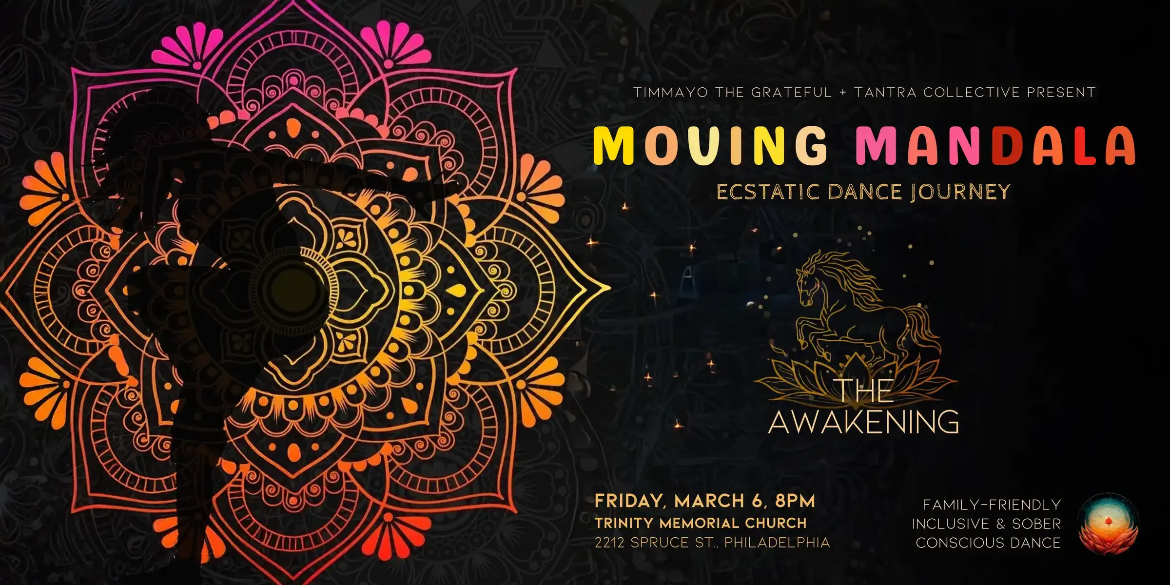 30 minute opening live music, slow flow ecstatic dance and closing soundbath. Matthew and Krystina. 80 people came to dance at Trinity Memorial Church, the beautiful space Poranguí and other world class musicians rent when coming through Philadelphia.